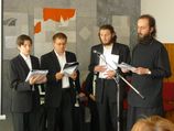 Ďalej sme si v programe vypočuli moravsko-panónske legendy: Kliment Bulharský – Život Konštantína-Cyrila, Gorazd – Život Metodov. Za prítomných približne 60 nadšených účastníkov môžem povedať, že tento recitál bol režijne aj interpretačne vynikajúco pripravený a oslovil nás svojím autentickým podaním situácie po príchode solúnskych vierozvestcov na Veľkú Moravu.
